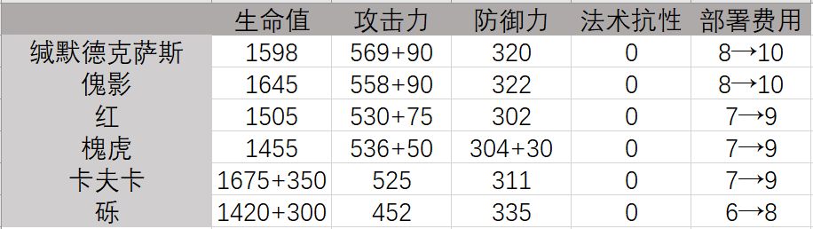 注:部分数据引用自mooncell明日方舟