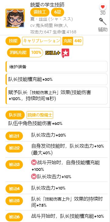 这里就先举例比较好懂的6星真神·技工·夏丝丝