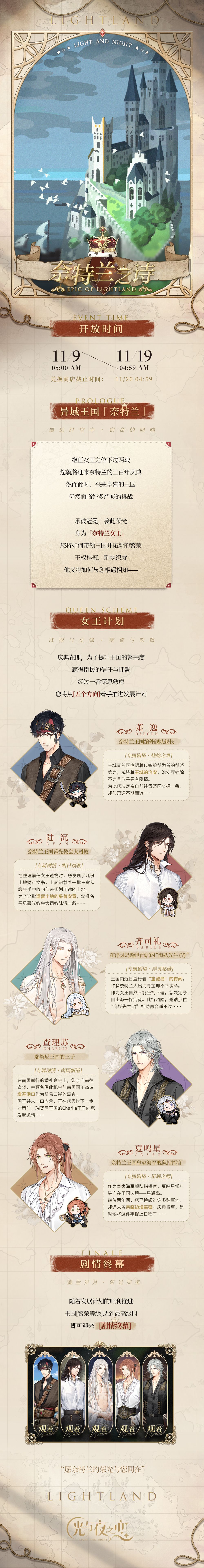 活动概要:参与活动「奈特兰之诗」即可体验限时活动剧情,与他在全新世界开启异域的浪漫诗章,还可获取限定抽卡道具、活动限定灵犀、专属称号&头像框等丰富奖励。