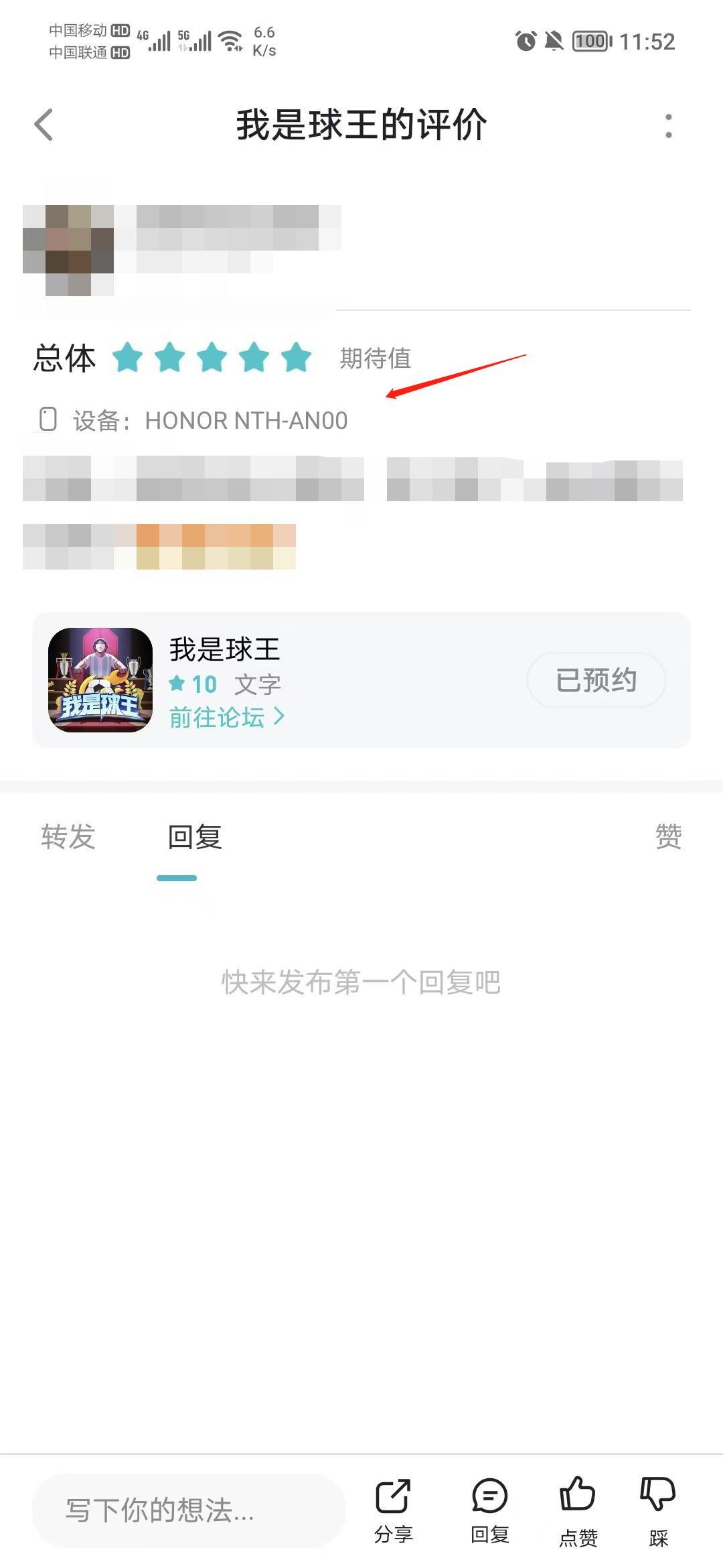 预约并打分评价《重生之我是球王》,并在该帖内发送评价区评论后截图
