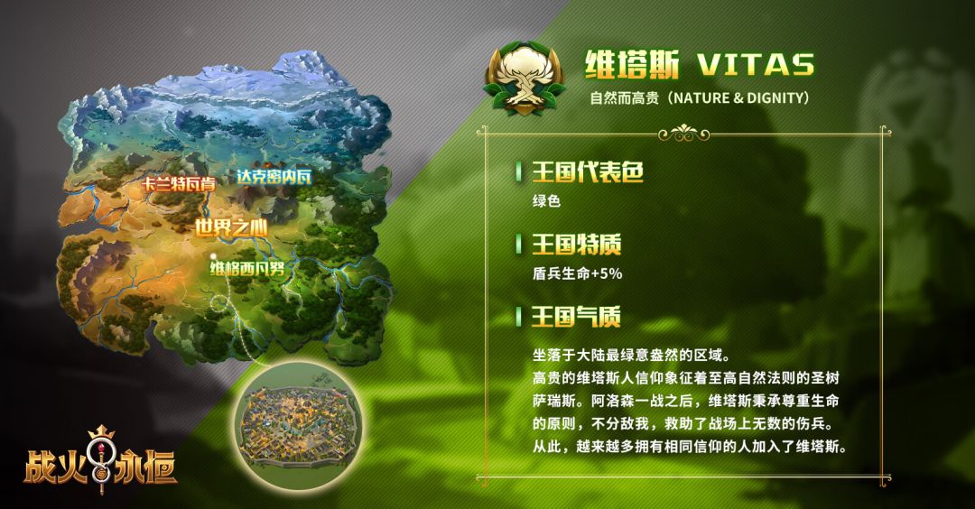 维塔斯人尊重生命,热爱和平。他们怀抱着与生俱来的高贵与优雅,从不树敌。他们的强大是防御性的、内敛的,与鲁斯兰人形成鲜明对比。