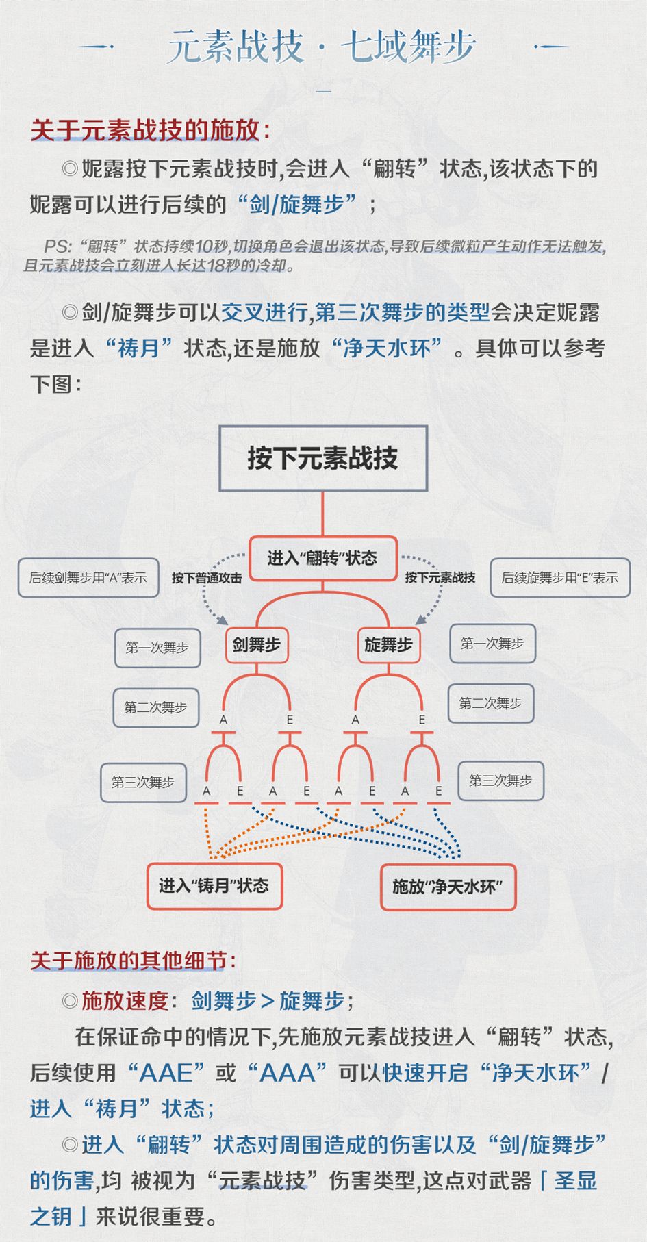◎该状态下的“剑舞步”与翩转状态相同,均被视为“元素战技”伤害类型;