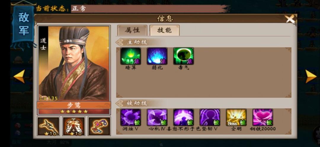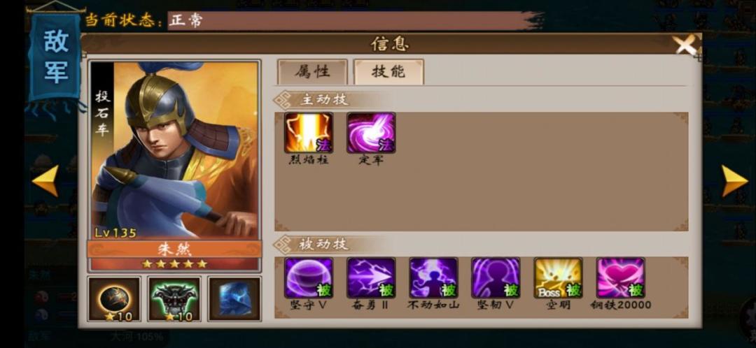 朱桓,二动马,技能50%闪避。破解,没有主动技能,注意二动马的距离,法术必中杀他。