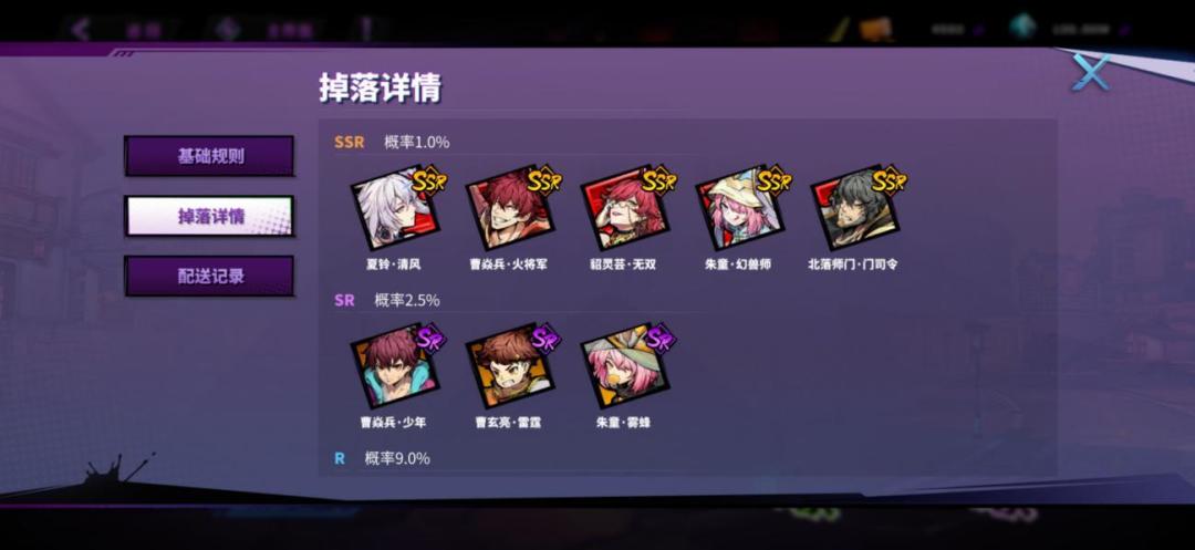 抽卡的详细规则,如下规则面板所示——