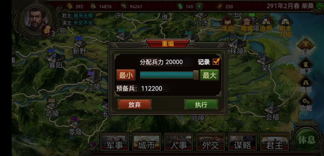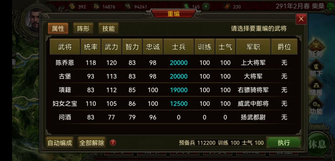 之前的存档士兵最多可以带到十万,过了4个小时以后重新分配了一下军职就这样了,而且攻打城池时,觉醒武将技能失效,比如觉醒后带的国色不吸兵了