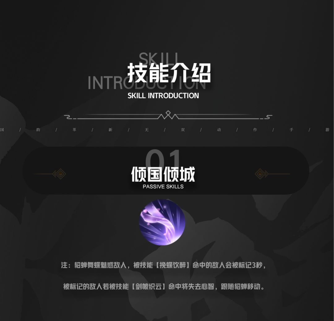 作为东汉末年司徒王允的义女,貂蝉为救汉朝,以著名的连环计,借吕布之手除掉了董卓,从此结束了董卓的统治。在《极无双2》中,貂蝉是一位极强的法师型武将,在拥有强劲控制能力的同时,亦有强力的远程伤害,快随小煮一同看看貂蝉的人物设定吧~