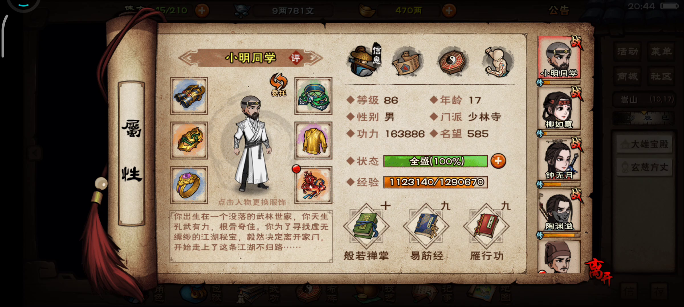 明天可以升级了,明天也龙象也十重了,有了控制八荒君杰基本拿下了。蛇王还需要随从的等镇派内功升高一点,只要能扛过2次喷毒,蛇王基本能拿下!
