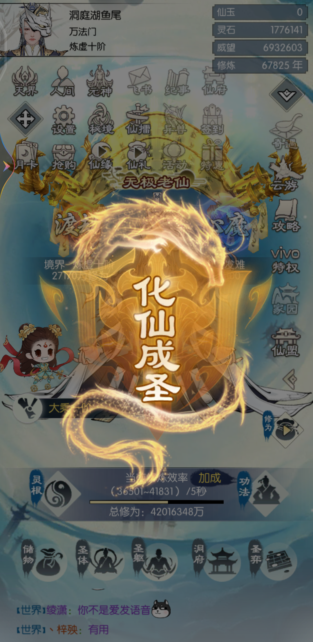 感谢一心的收留和支持,还有渠道服支持我的各位,才一步步玩到化圣,虽然是功德,但是对我来说很满足了,我玩之前也是图一乐,没想到还能延续一个看似完不成的玩笑😂,因为是图一乐,所以没氪金(我自己都不信,氪了3元,收集党😁)