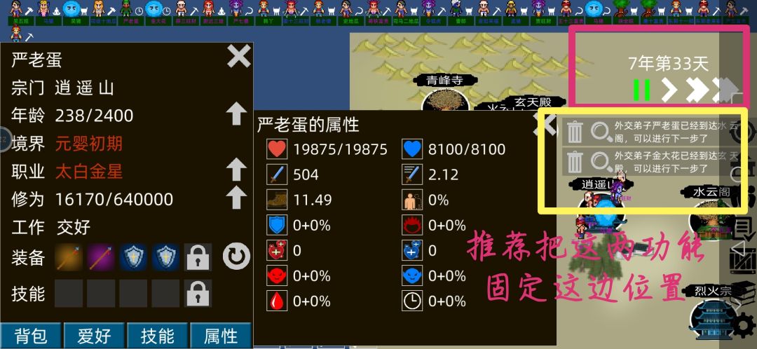 ④派遣弟子板块推荐搞成目前4倍大,🙊找徒弟方便