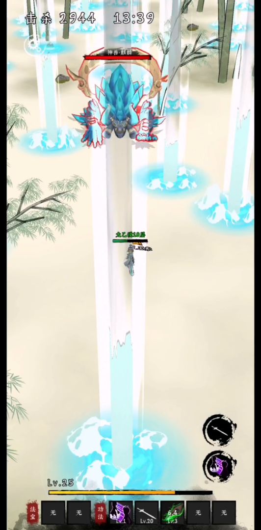 2、冰刺。从麒麟身边向四周发射冰刺。