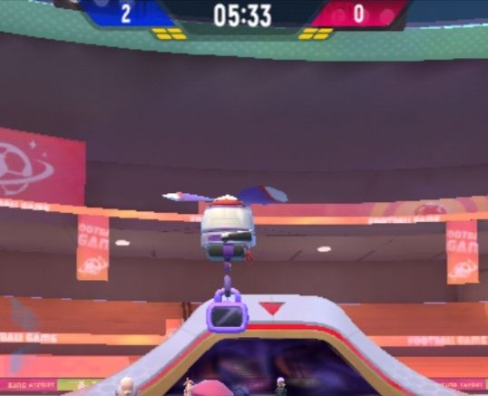 图中紫色飞高高下面的那个摄像机就是我们的摄像飞高高,当你把球踢向球门时,就会出现这个摄像机。各位小肠肠可以在摄像机面前展示自己的英姿哦,其他七位小肠肠是能看到你的!