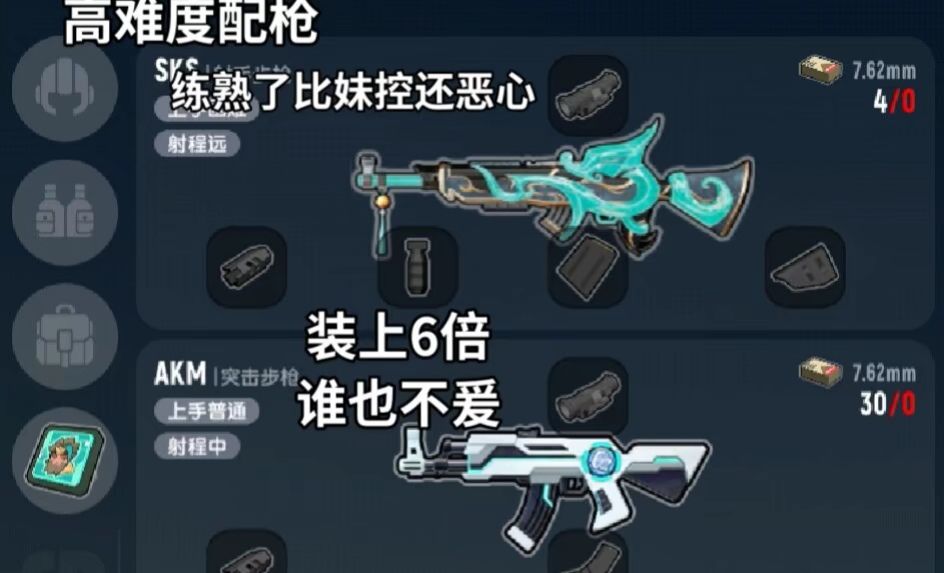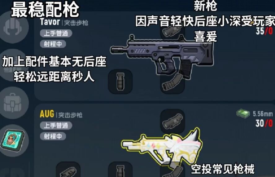 上面这五种都是比较强势的枪械搭配,如果你经常落地捡不到好的枪,那就只能用下面这一组凑合了