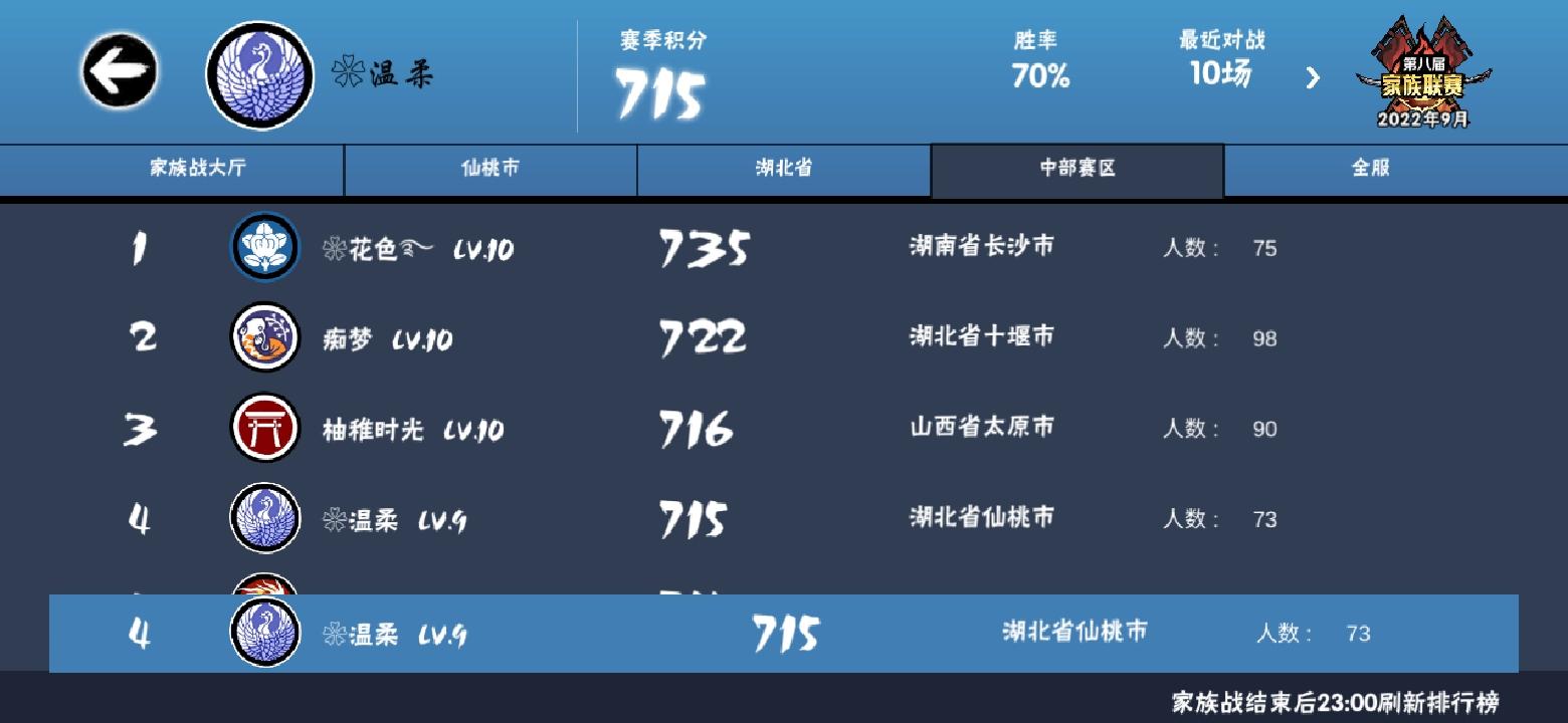 ✿上届联赛64强 目前族战全服前100❀
