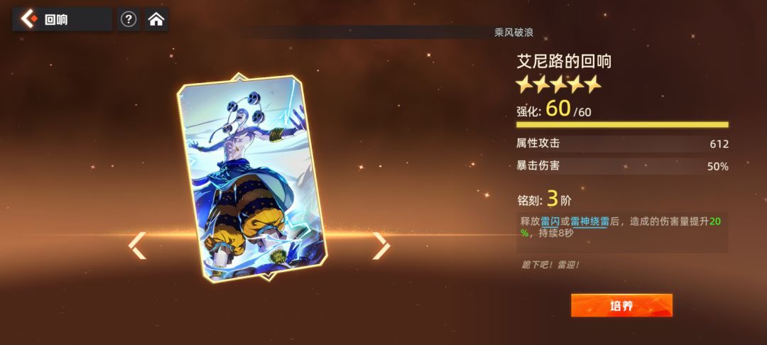 在PVE中艾尼路对能量的需求很大,因为他的输出主要就是靠4下普攻出雷印叠一面雷鼓,然后依次放技能321(连招顺序原因后面会讲)将雷鼓叠到四层之后秒开爆气变雷神(2技能释放后有延迟性,最后放二技能再秒开爆气,容易叠不到四层雷鼓无法变身雷神),之后按32(长按)1顺序技能全部放完之后放大招,把伤害打满,这一套流程下来需要3格能量,所以在爆气之前至少保证雷神是有两格能量的最终才能打满伤害,所以说艾尼路对能量的需求很大。(爆气变身后技能段数多回复能量多且普攻命中会减冷却,可以快速攒出一格能量)