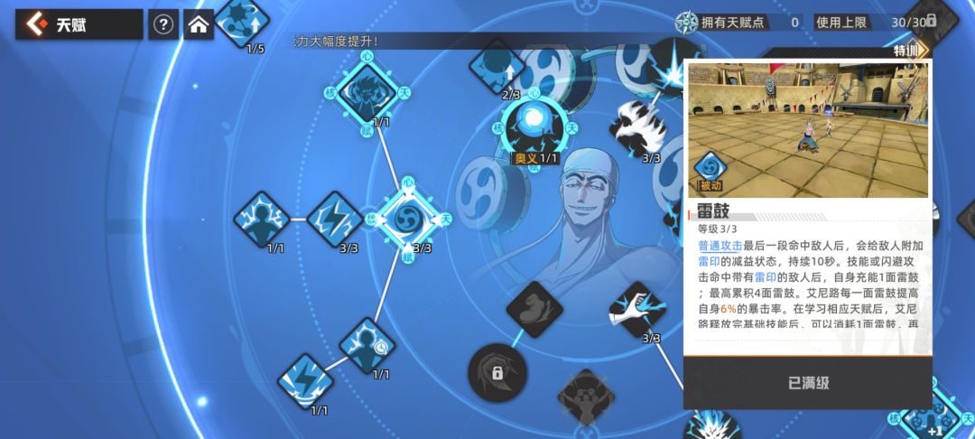 由1可得艾尼路的核心天赋是雷印和大奥,把其相应的衍生天赋点完,以及点下追加技即可。