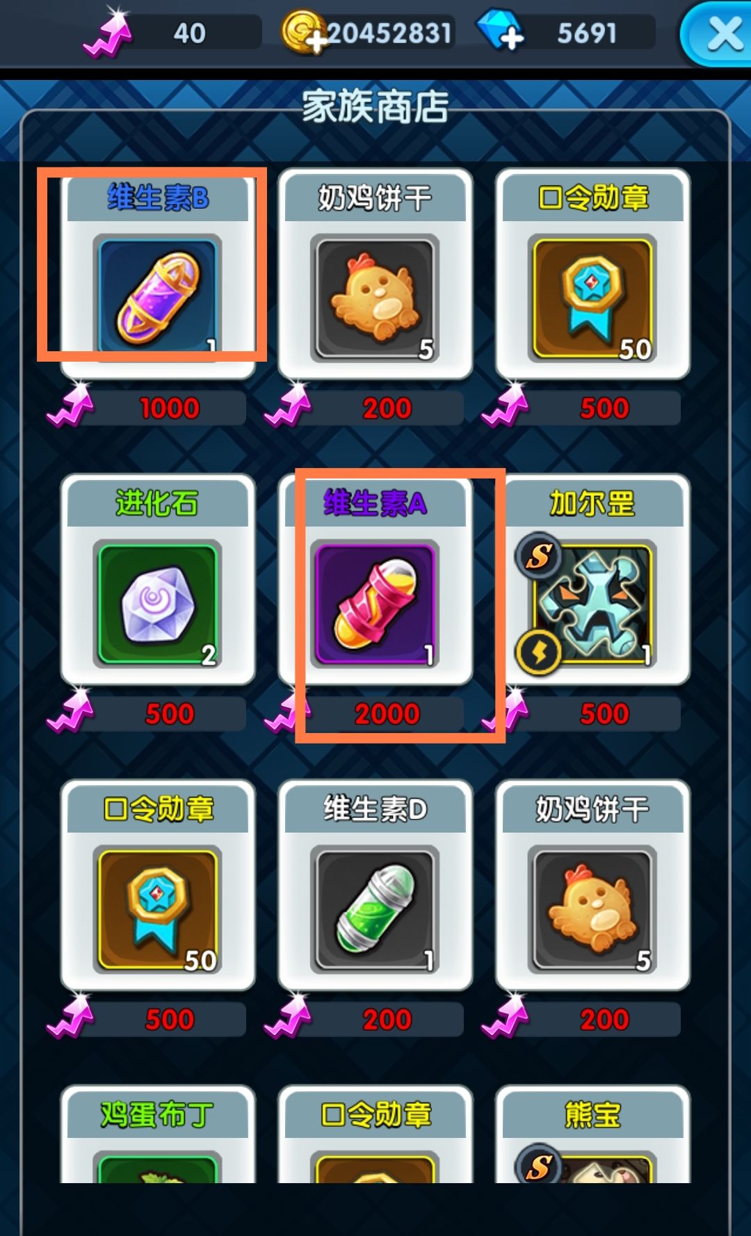 然后是家族签到和商店 签到没什么好说的 每天记得签到 免得被踢 签到也可以获得贡献奖励 可以去商店兑换东西