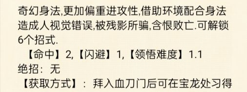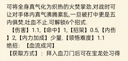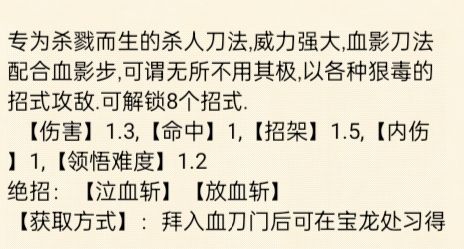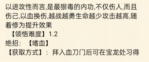 ⭐武学评价:⭐⭐(较弱)对血刀帮助较大,不好搭配。