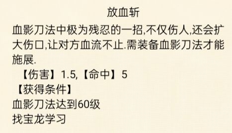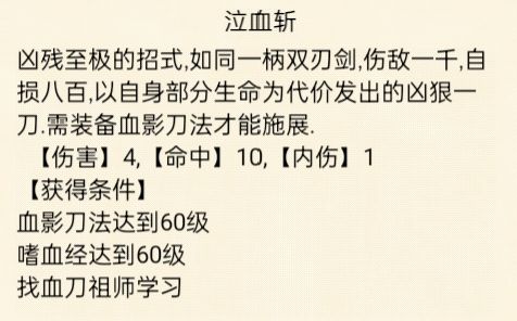 ⭐武学评价:⭐⭐⭐(中等)不好搭配,非常适合血刀。