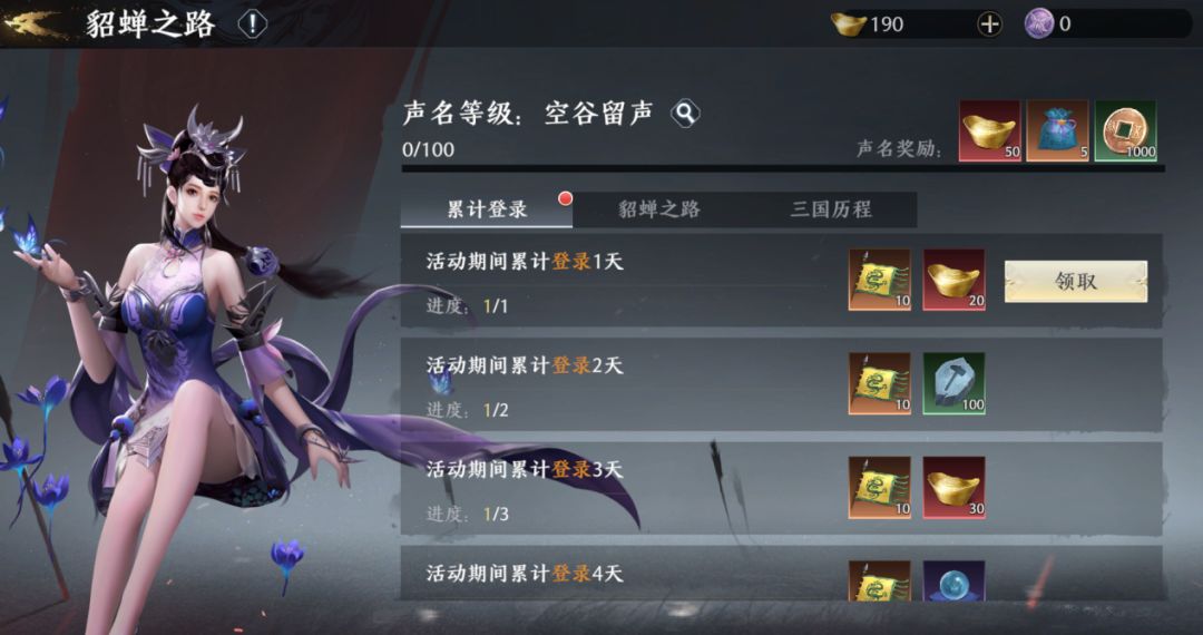 活动说明:将军可以在貂蝉列传中体验全新的故事章节,通过貂蝉的视角体验乱世儿女情长,在故事节点做出选择,达成不同的精彩结局。