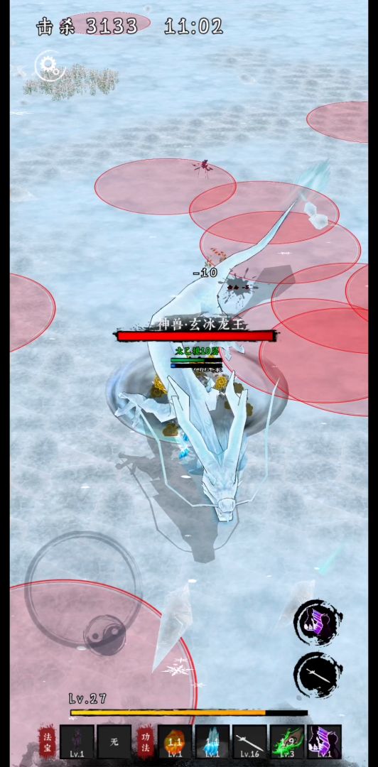 神兽•玄冰龙王不会普通攻击,只会反复施放以下3个技能: