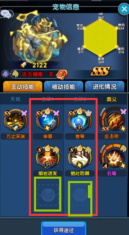 拿玄石头人来举例 玄进化以后 主动会随机3出一 可能并不会出举盾 而且有可能是空技能