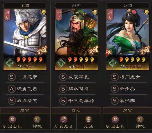 (主将)赵云,战法搭配:轻勇飞燕+威谋糜亢