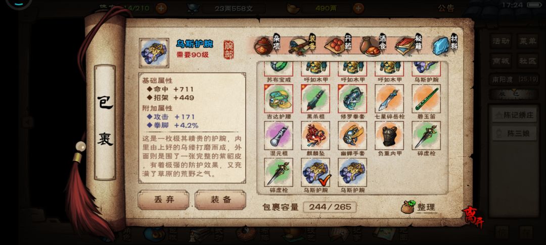 还差3张,从明天开始三刷天一教,今天也看了一点90装备的序列。所以把屯的装备都卖了。银两富裕。