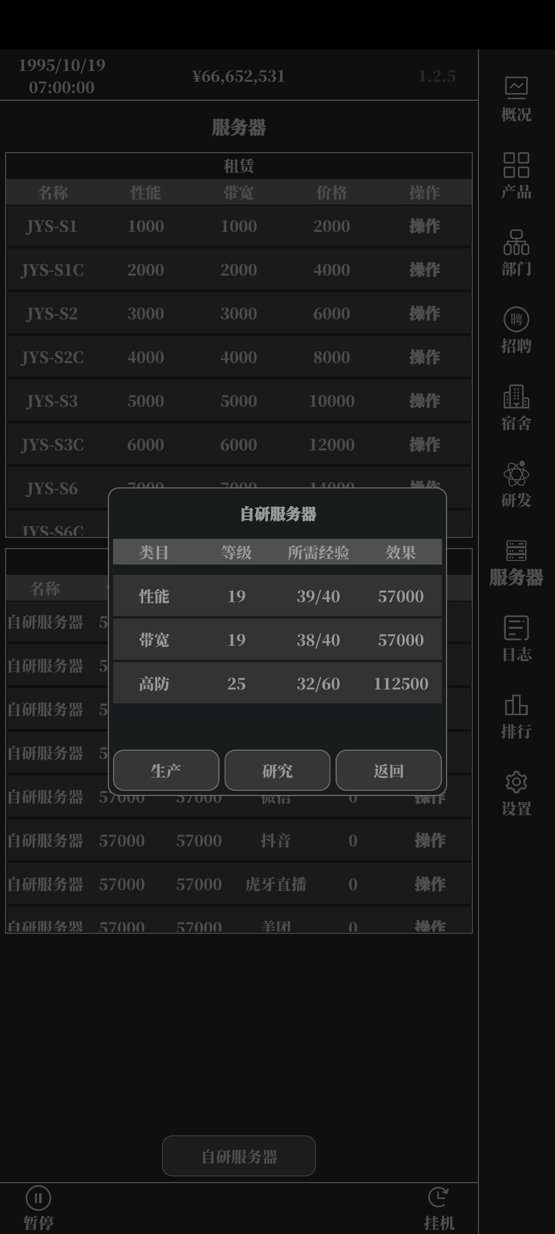5.自研服务器:如图8,性能57000的自研服务器(1.2.5版本Bug,就是自研服务器可以1000次研究不用花金钱)