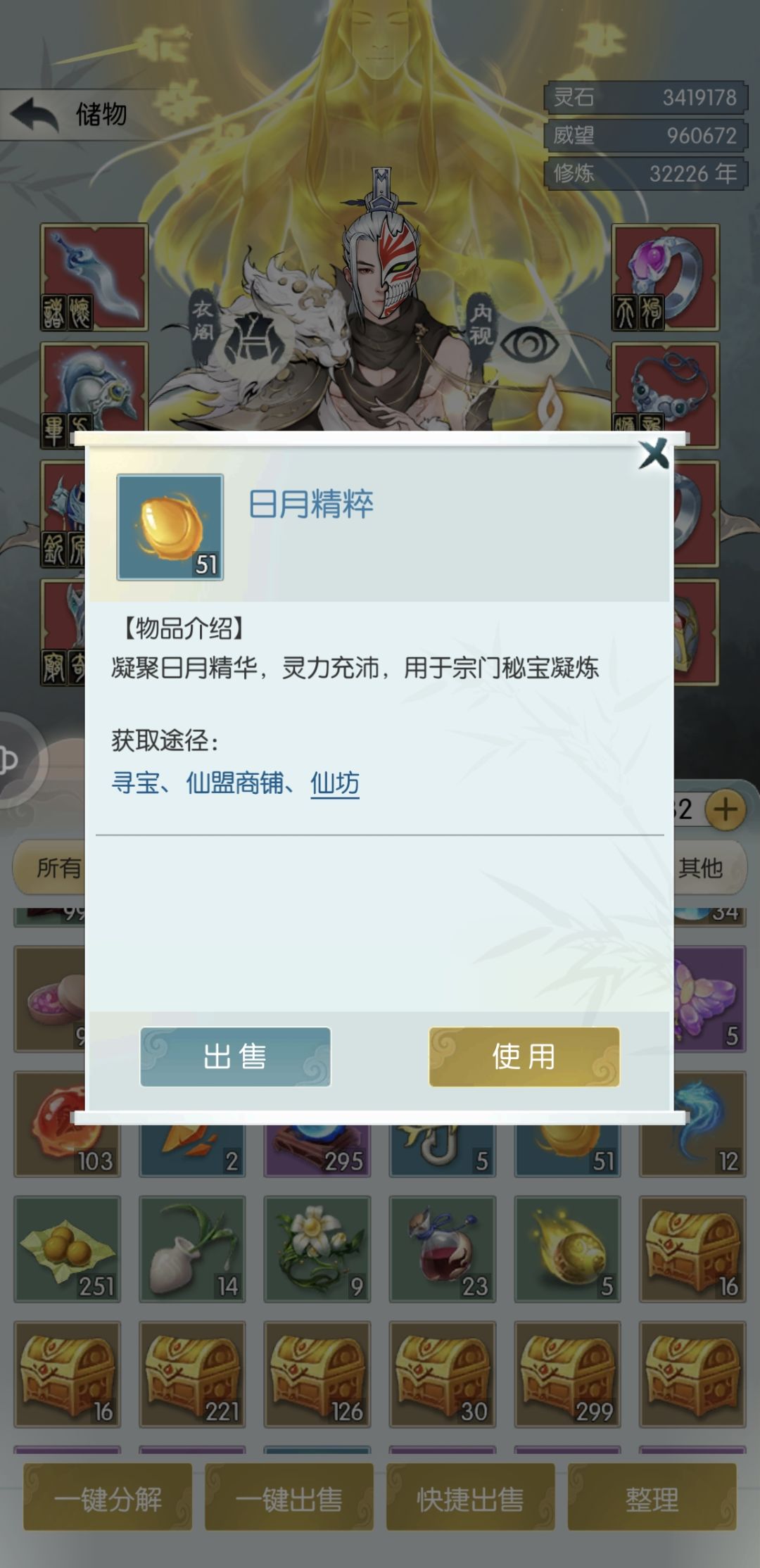 新道友在初解锁宗门秘宝开始抽的时候,获得的日月精粹与洪荒精魄不要着急用,低阶秘宝的加成是很小的,而目前的精粹与精魄是完全不够用的,所以最好等到出红色秘宝之后再进行主要培养。