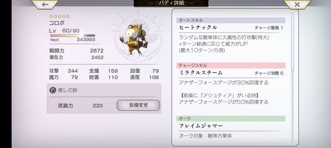 攻击103 魔力159 支援232 妨害232 回复361 速度159