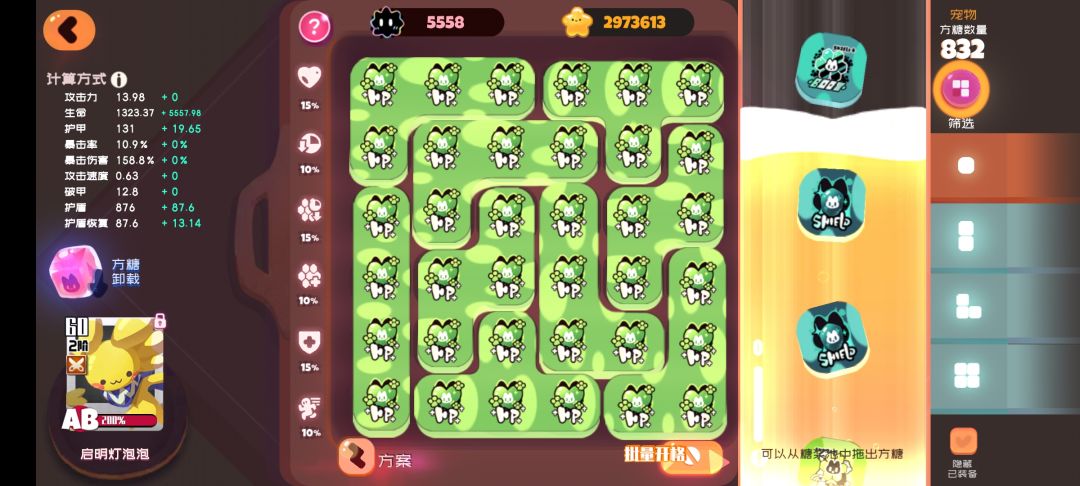 光环和技能不吃方糖加成。但仍然选择生命拉满。提高存活率保证技能可以触发。(水母无法触发技能,只有角色可以。)