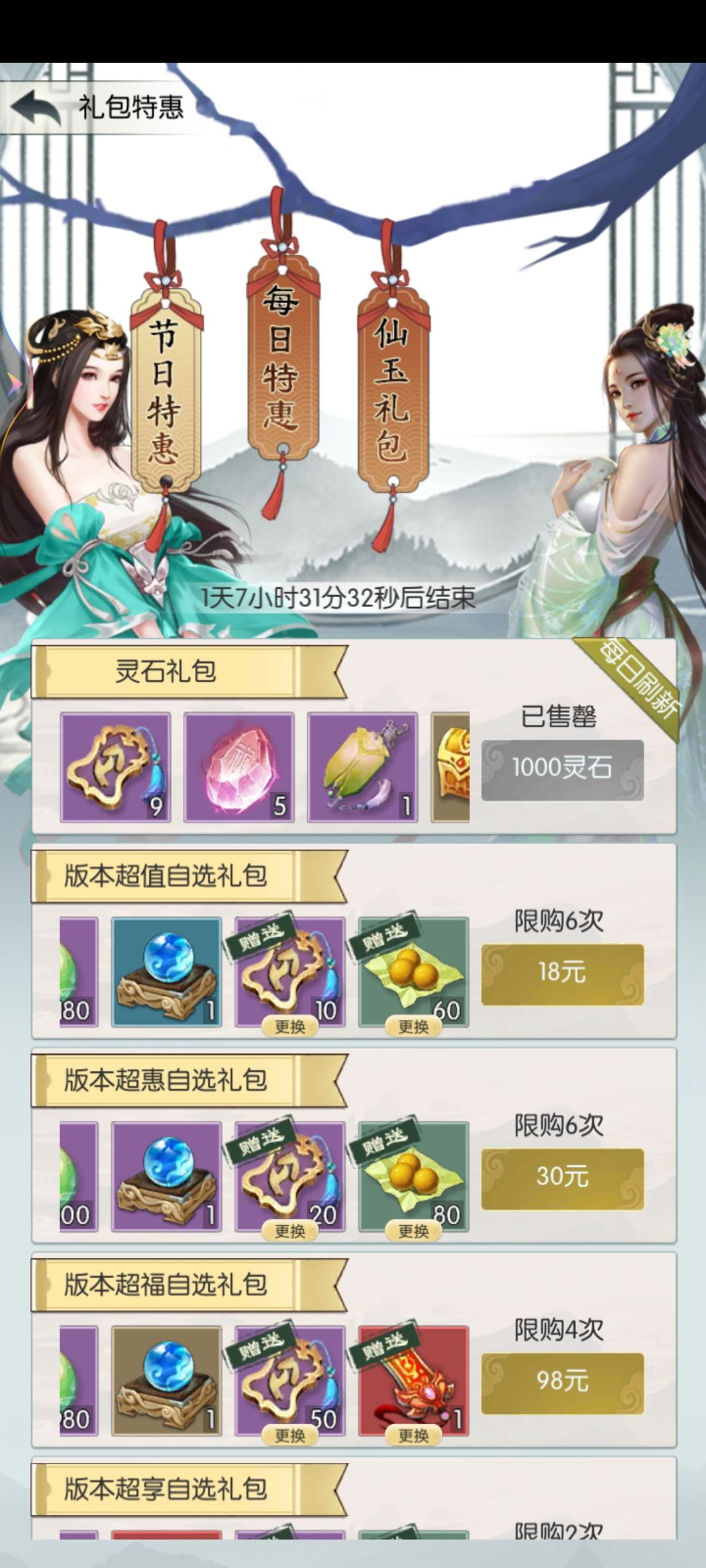 官职+月卡+雷火招式+仙册一+仙册三+抢购+礼包特惠