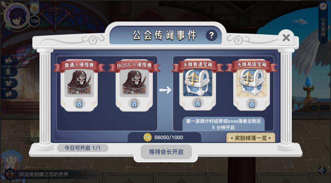 会长每日可使用【公会资金】开启1次公会传闻事件,事件开启期间,公会成员们击败入侵的怪物后,就可以获得不同等级的宝箱奖励,奖励中除了公会功能相关道具,会有机会获得【钻石】珍稀道具哦。