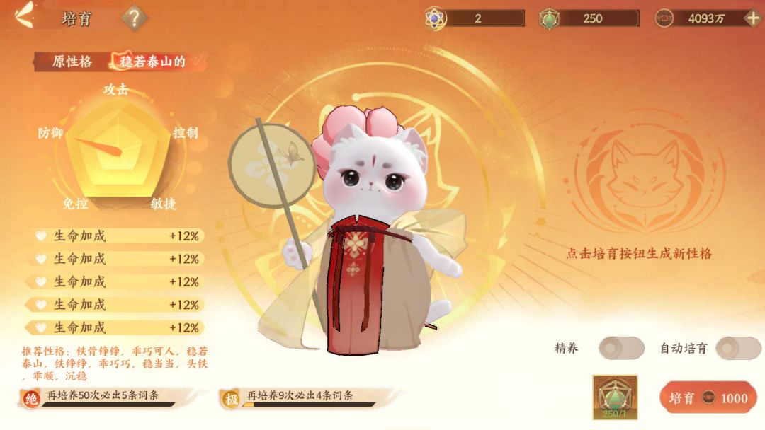 (猫咪属性洗练页面)