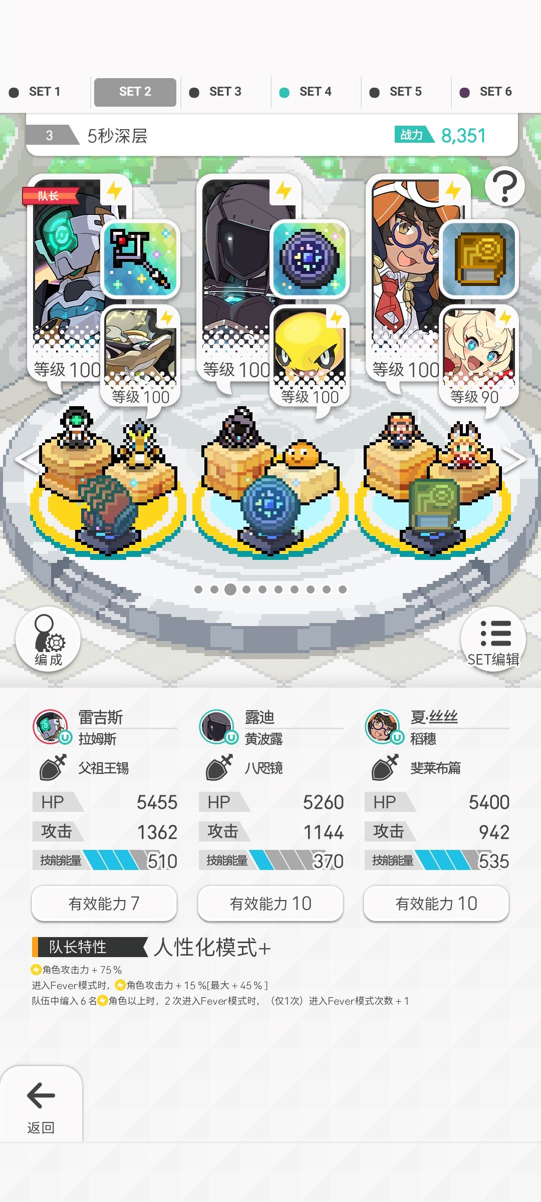 常驻的75雷属攻刃,暖满的45雷属攻刃,①6雷的fever次数增加