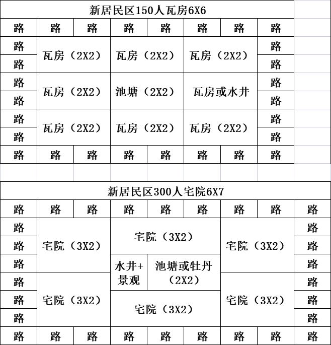 8新农业区,9新居民区(150人新晴村疃后瓦房),10娱乐区集市客店戏台、纺织场、制玉坊首饰铺(采玉所在靠近深山偏远地方,但感觉采集量好少可能我机制没懂),1道观1佛寺降犯罪、石方井降火灾,建议石方井在居民人口密集处、娱乐区、存储区各建至少一个,这些设施重建成本大,还有多余可以建在农业区加灌溉产出、防火