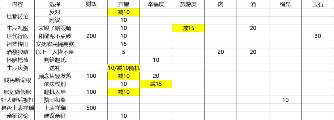 ④建议决策断案往有利于增加幸福度/声望的选项选,有利促进人口保留/增长