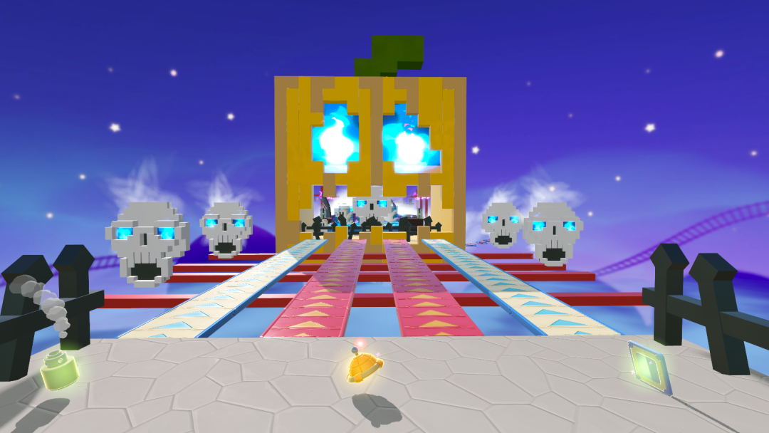 如果有喜欢刺激的蛋仔,一定不要错过@改名来好运的【万圣午夜狂欢】派对,幽灵、鬼火、南瓜头等万圣要素直接把惊悚氛围拉满。