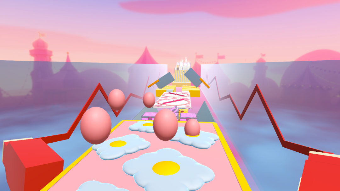 冲过骷髅阵、幽灵墙、蜘蛛网,最后坐上不停移动的蝙蝠冲向终点。可要抓紧了~不然小心被丢到油锅里!