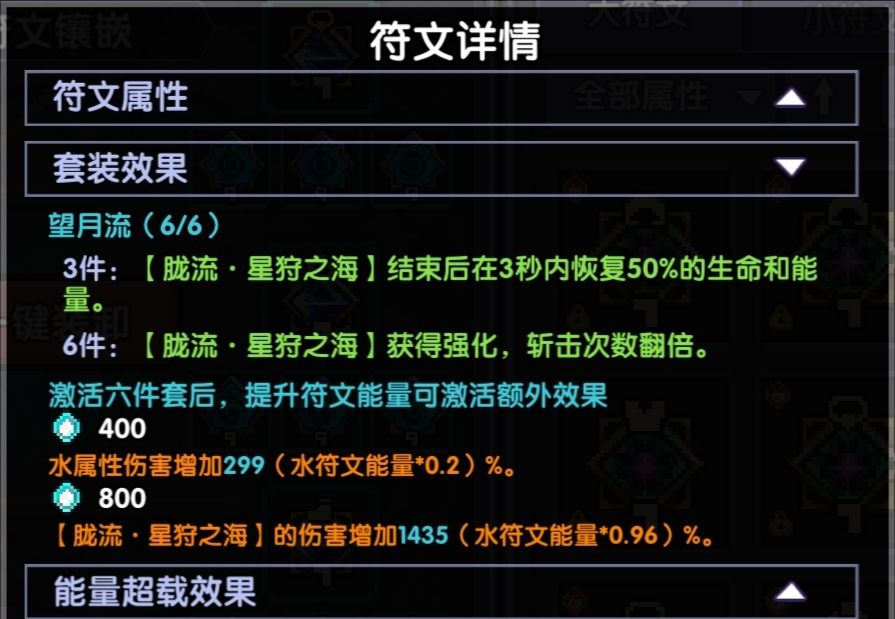 800能量:大幅度增加核心技能【胧流·星狩之海】的伤害,因此能量对于自身伤害的提升非常明显