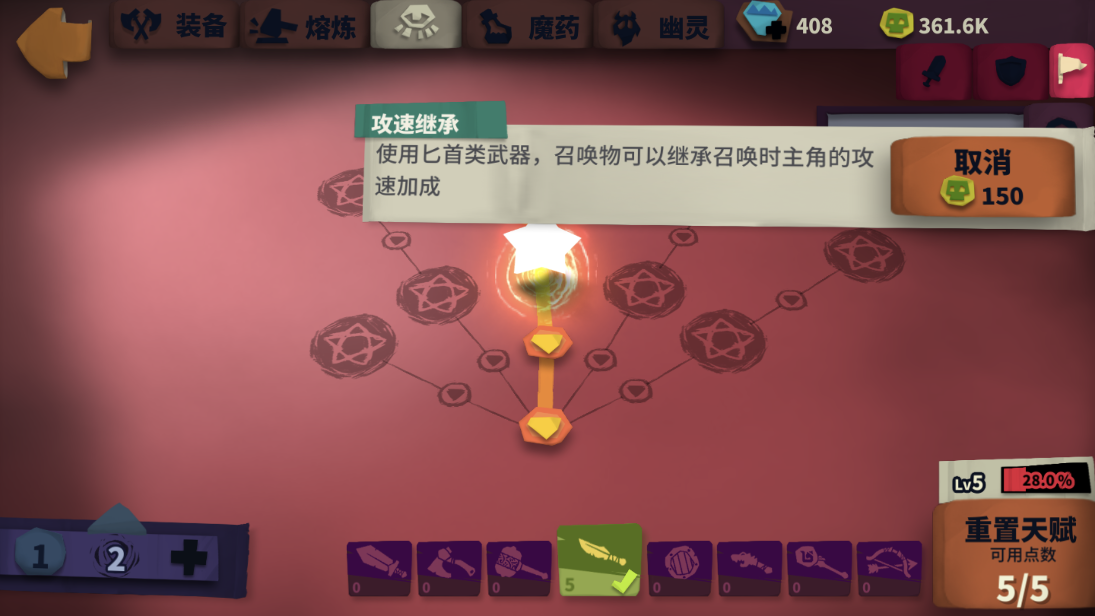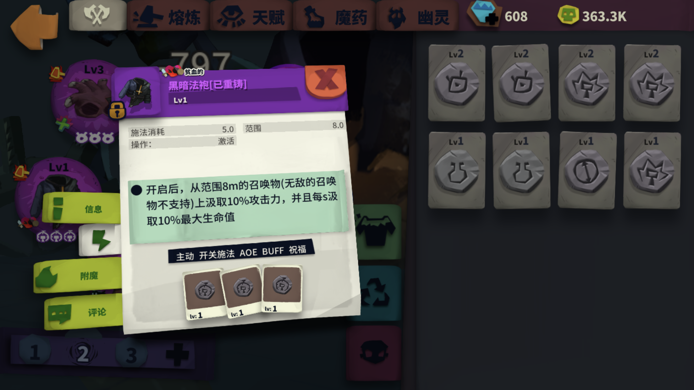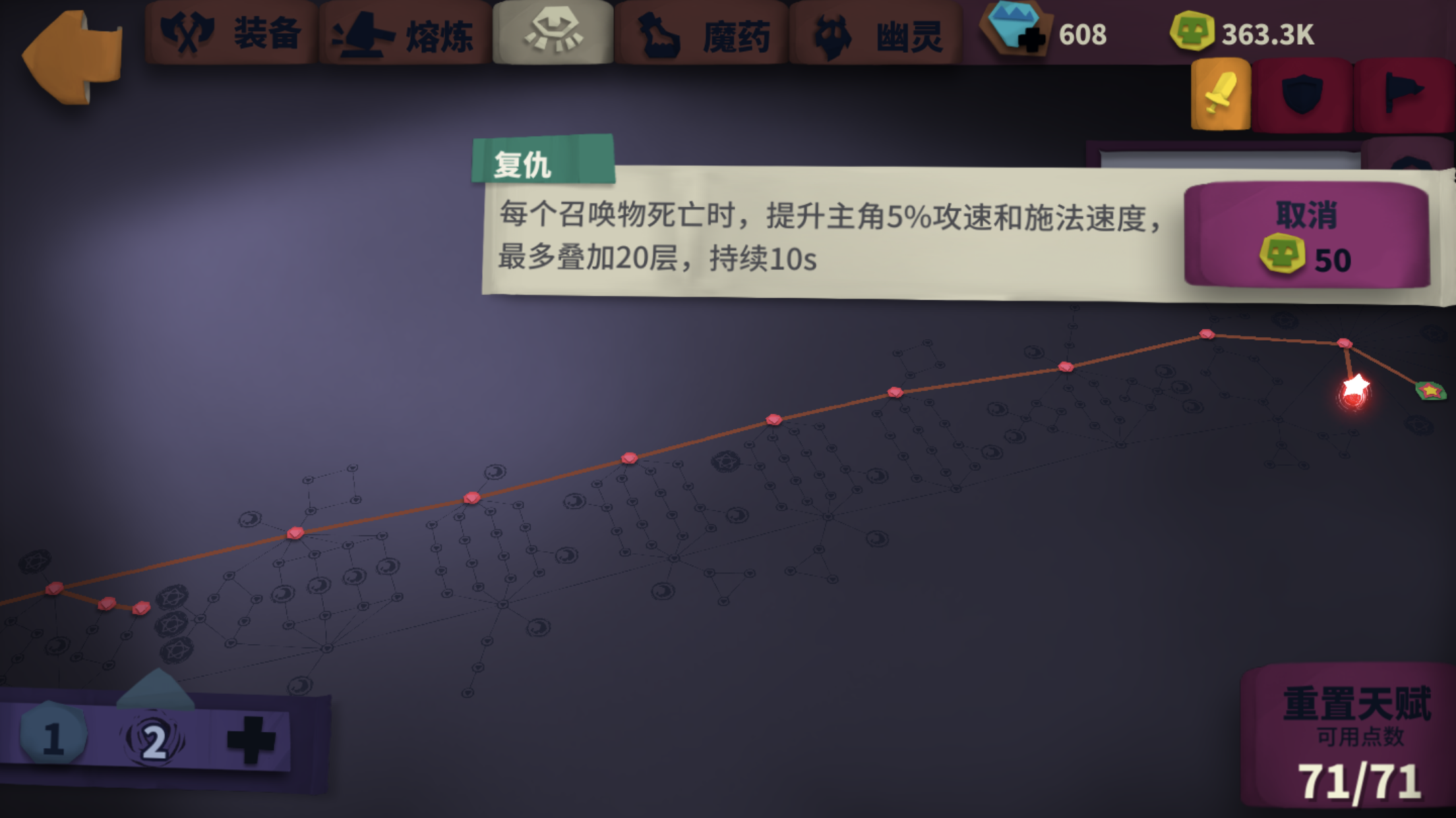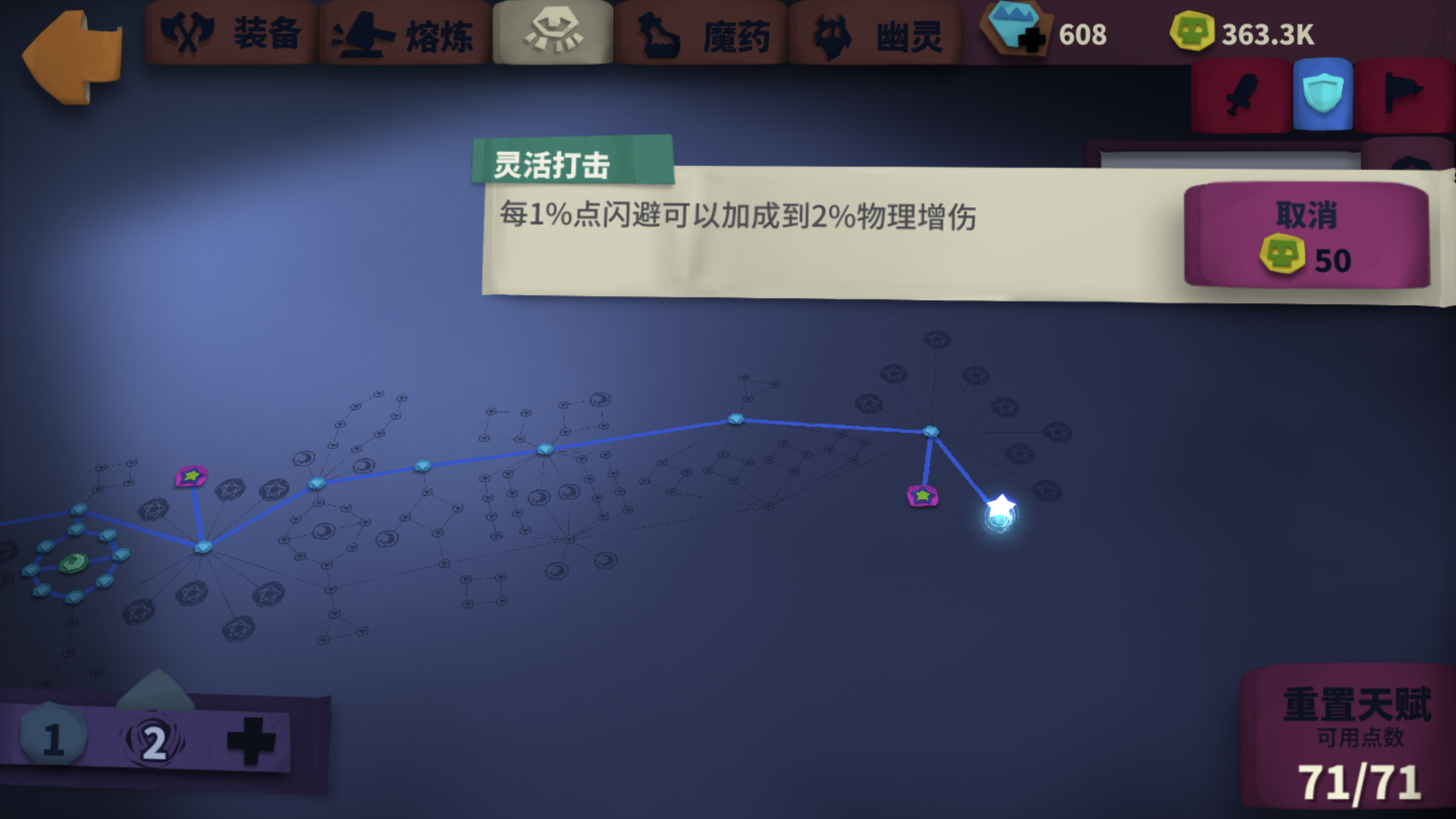 天赋点不够时,适量减少闪避天赋,鞋子可以出闪避词条。(没黑暗法袍死亡馈赠也点上,史莱姆死亡可以给角色回血10%)