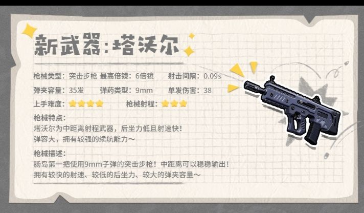 SS7赛季新增武器是Tavor作者推荐新手最高可装6倍镜,好压枪,使用9mm子弹。
