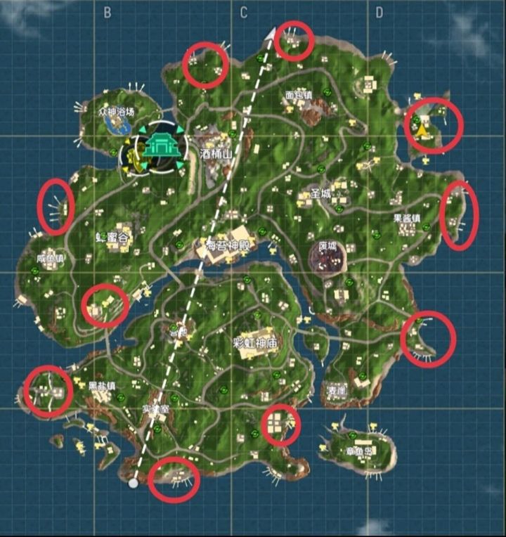 对于新手还不太了解,香肠时可以苟分(但推荐钢枪可以提升实力)当枪可以去彩虹神庙,海苔神殿(如下图用⭕圈起来的就是苟分点)