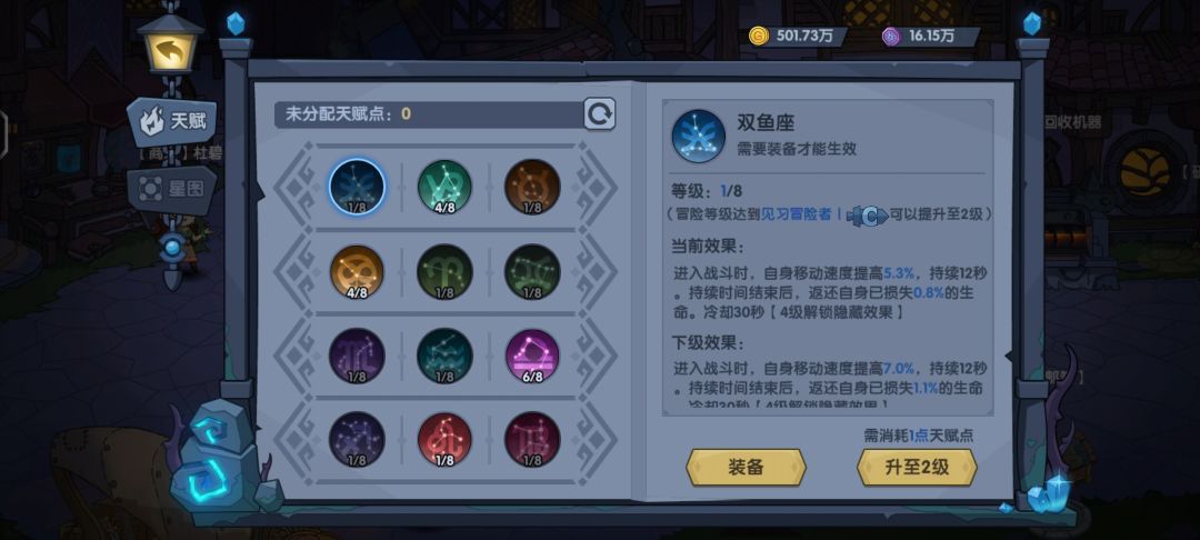 4、星座选择:必选天秤(提供减伤),次选摩羯(提升回复)、巨蟹(提高仇恨以免组队拉不住仇恨)。天秤先点1级后面按需求升级。