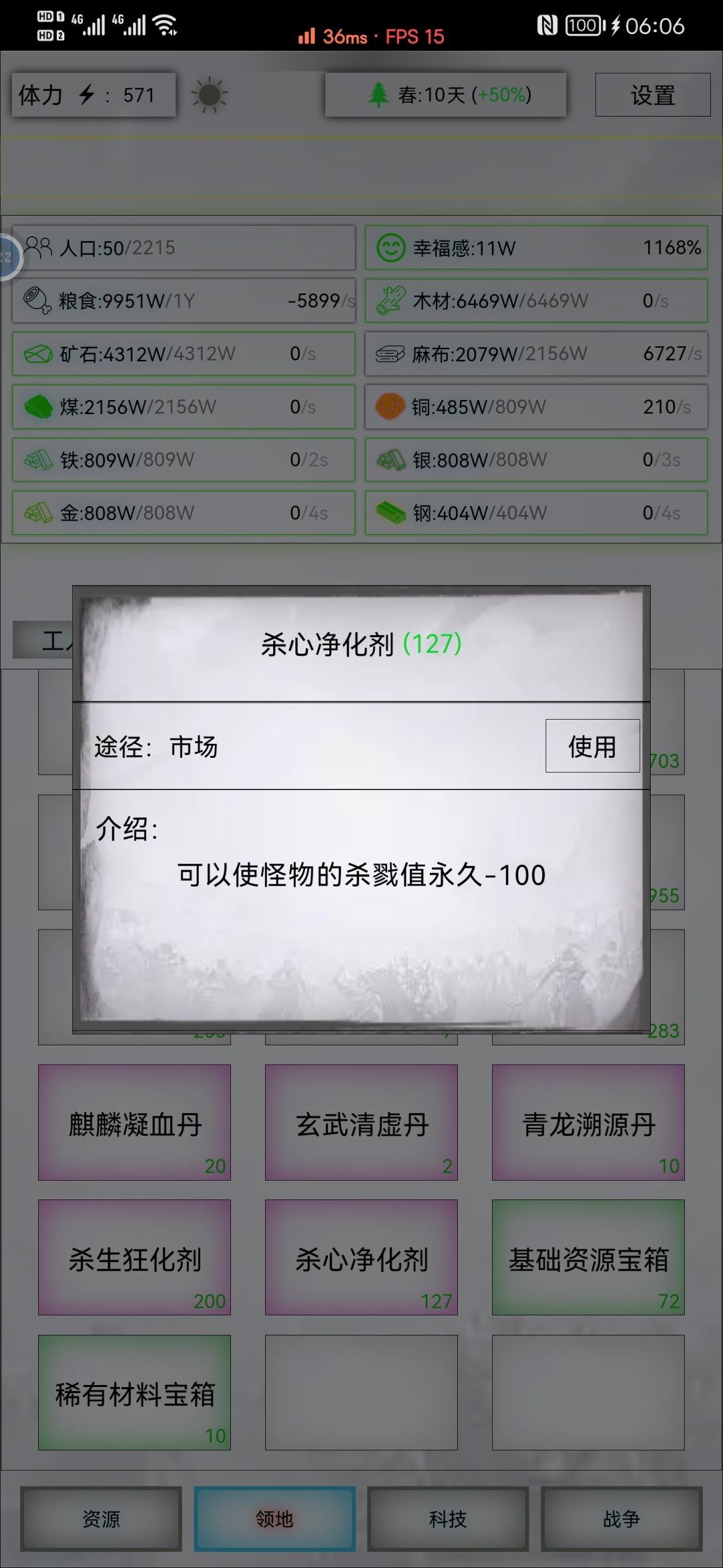 采集页面任意一个达到500级满级将大大提升获取麒麟丹和杀心净化剂的几率)