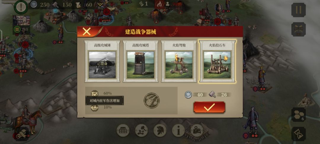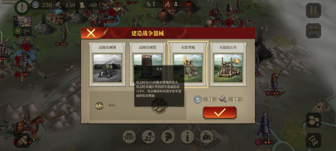 首先攻城锤,短短一行字,对城防加伤65%没了,被火焰投石车完爆,最废的攻城器械,不过很便宜