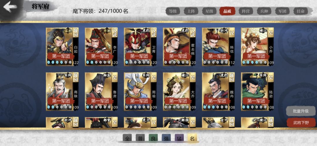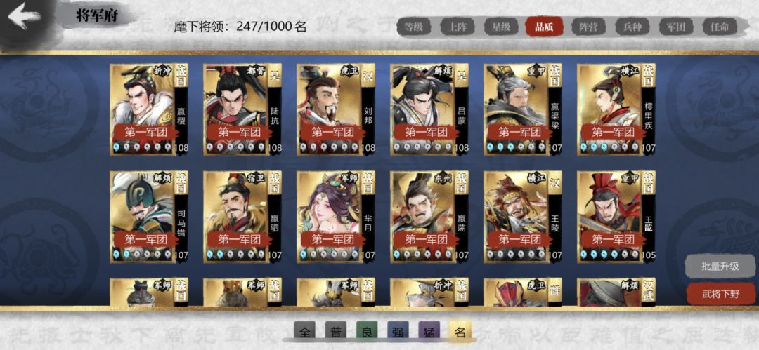 大佬们看看如何搭配这些武将 还有就是战国抽全了是抽汉武还是春秋