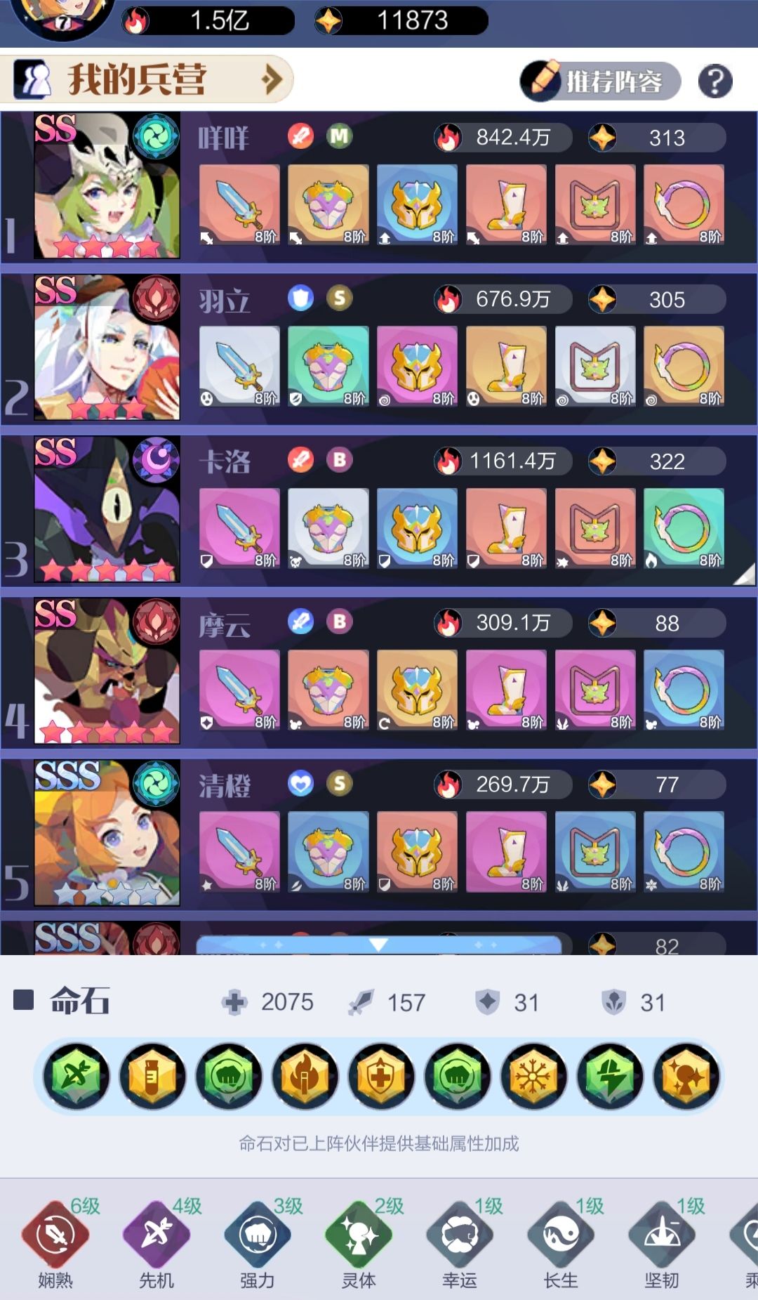 先机工具人(挂件):羽立(自爆步兵)、咩咩(开局晕前排)、法尔娜、冰芯灵(咩咩和羽立可以压血线,给点形态值更稳)