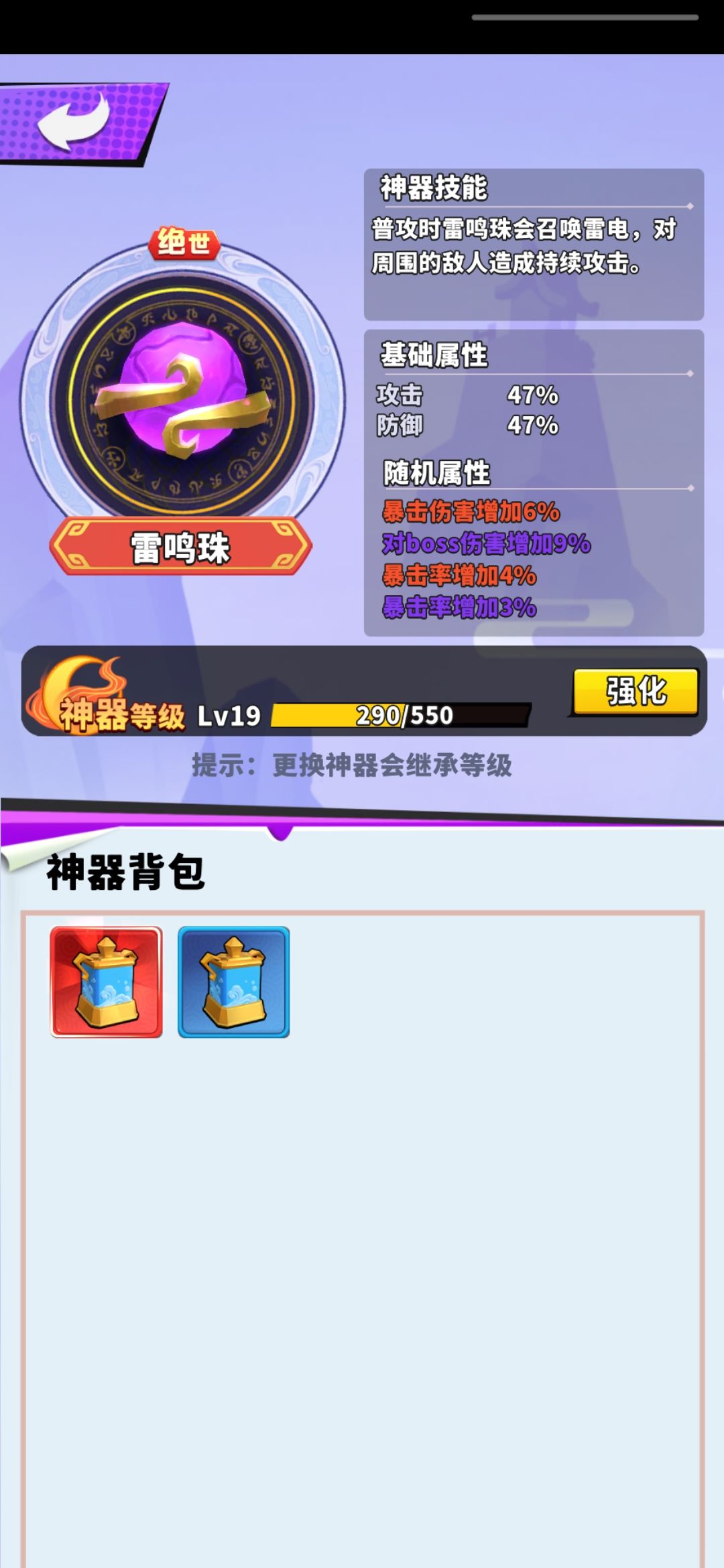 3、神器选择。没啥说的,刷黑市寻宝,红色的神器。