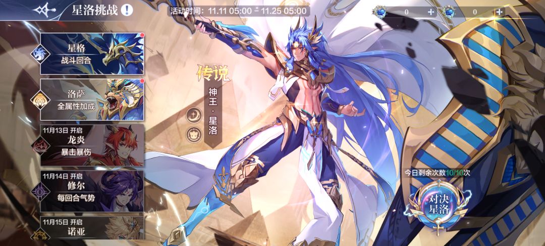 一、【雷沙之契】神王·星洛挑战开启!平衡力量可兑换星洛券*120